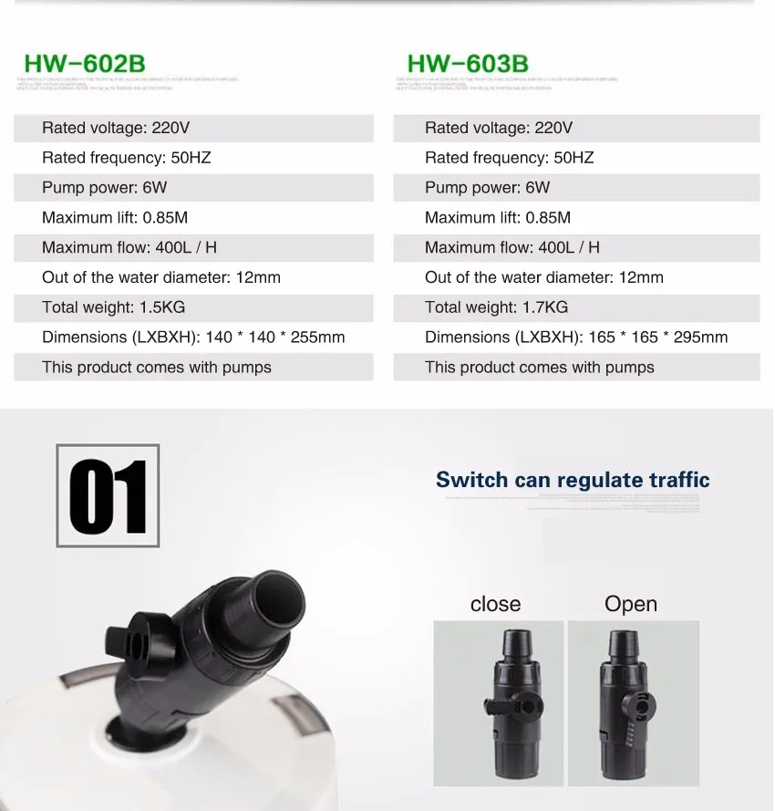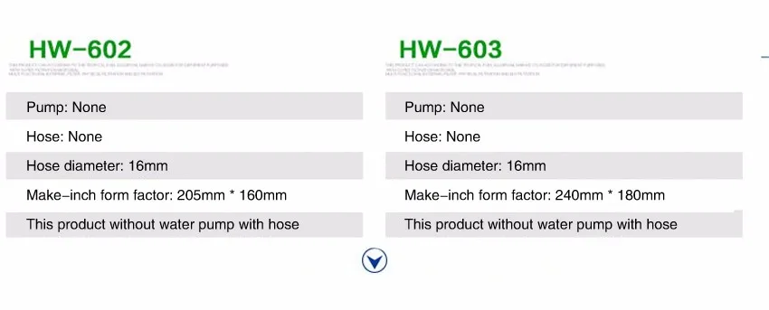 note: HW-602 / HW-603 no pumps and hoses HW-602B / HW-603B comes with pumps and hoses
