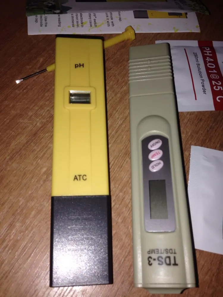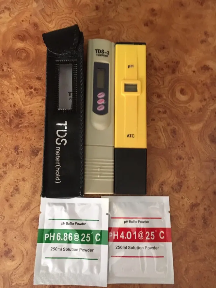 Measuring range :0.00-14 .00 PH Accuracy: +/- 0.1PH Resolution: 0.1PH Operating temperature: 0 oC~ 50 oC Battery: 3X1.5V (AG13 button battery type) (not including batteries) Dimensions: 142mm (L) × 29mm (W) × 15mm (H) Weight: 51 g PH meter calibration while increasing standards: 1, the pH electrode into the pH value of 6.86 (25 oCc under standard mixed phosphate buffer solution, and gently shake. 2, with a small screwdriver adjust the calibration potentiometer until the display value and the standard buffer solution at ambient temperature ph values. 3, the electrodes into pH4.00 stupid phosphorus or potassium acid borax pH9.18 standard buffer solution. 4, after about two minutes or so. Shows the pH value of the buffer value is compared to the error should be within the allowable range. TDS meter calibration while increasing standards: