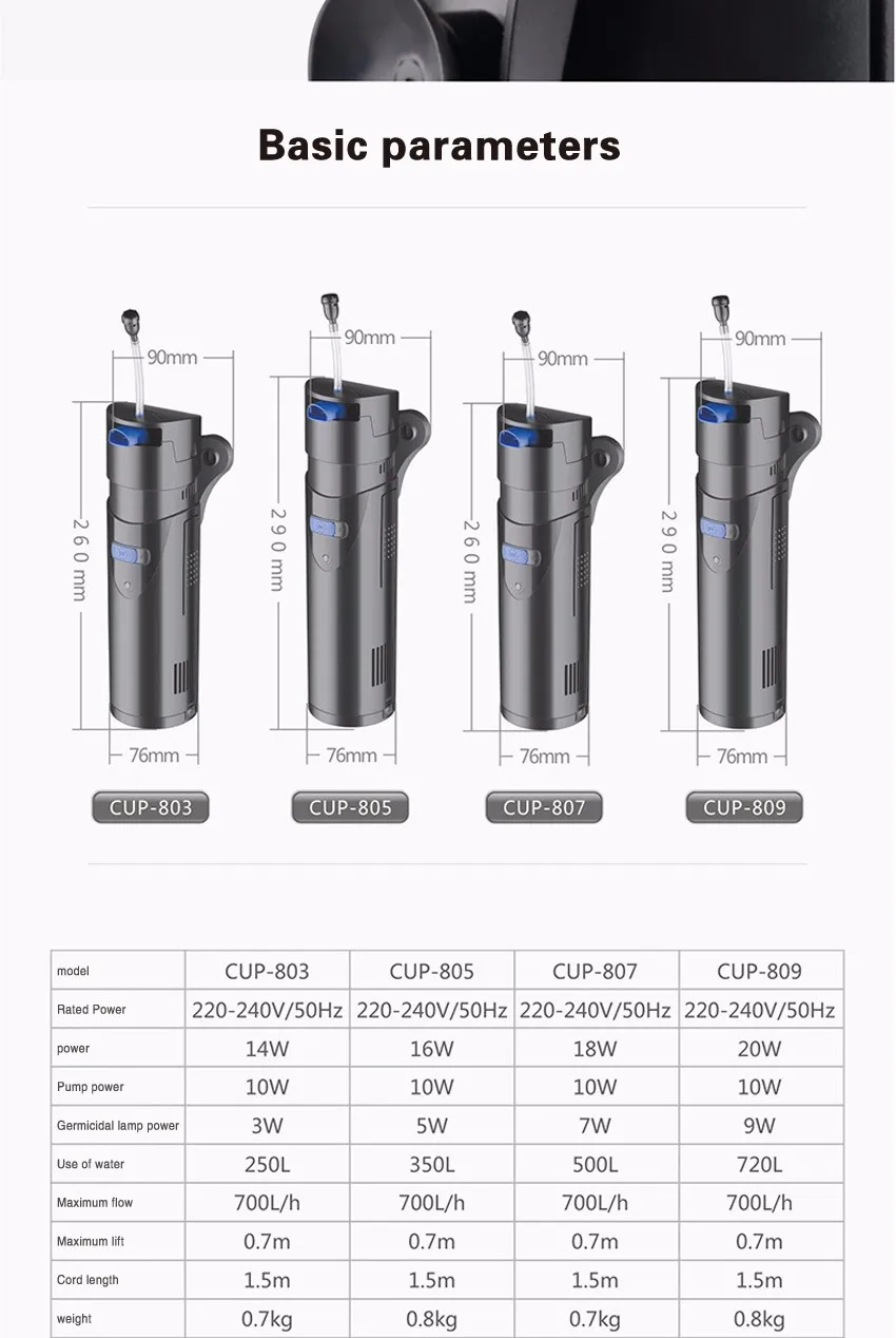 Aquarium aerator (Germicidal lamp / filter) Operating voltage: 220V-240V Power: 14W-20W Plug standard: American Standard